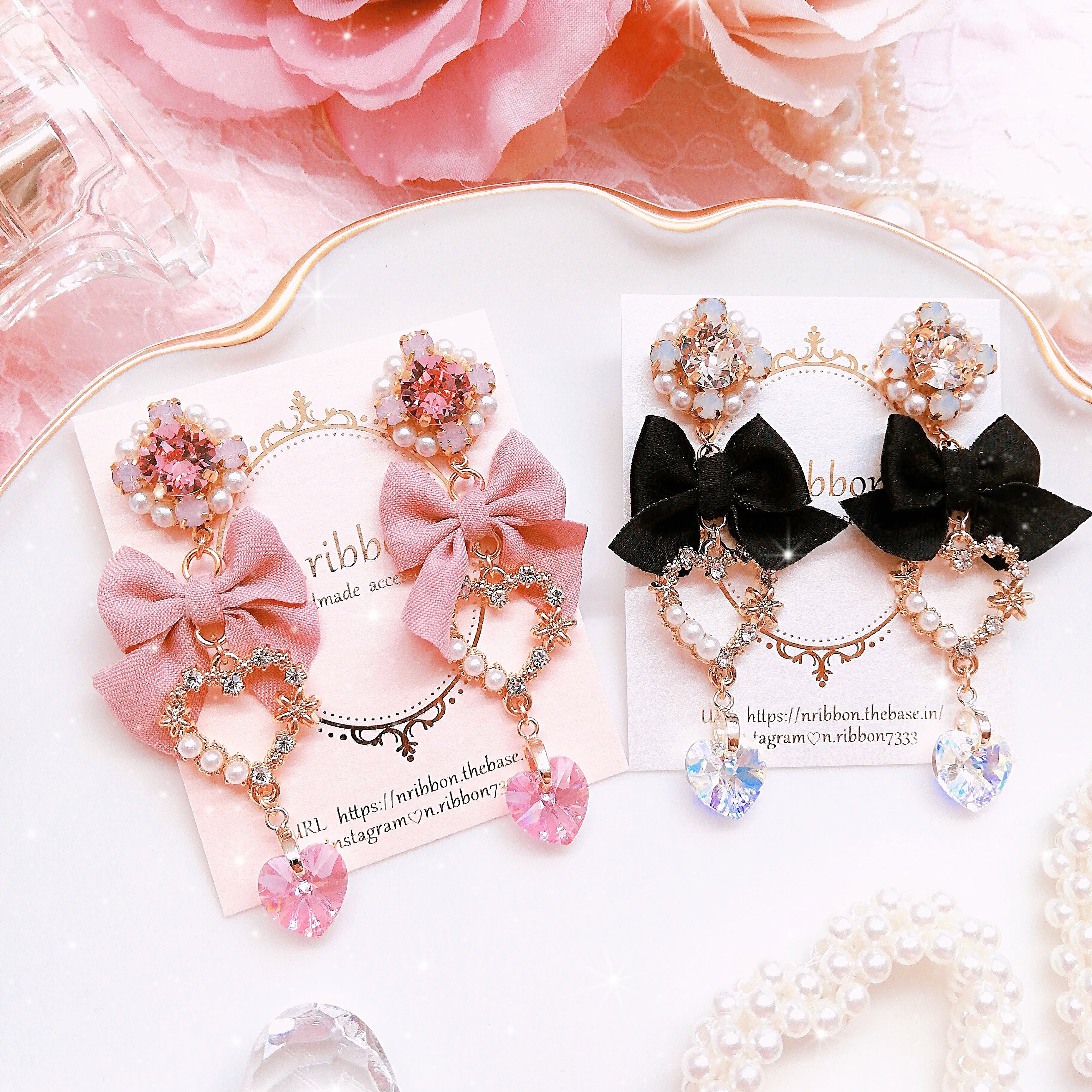 そして、ふんわりとしたサテンリボンからはクリスタルが施されたハートモチーフにスワロフスキーハートが揺れ動きます。