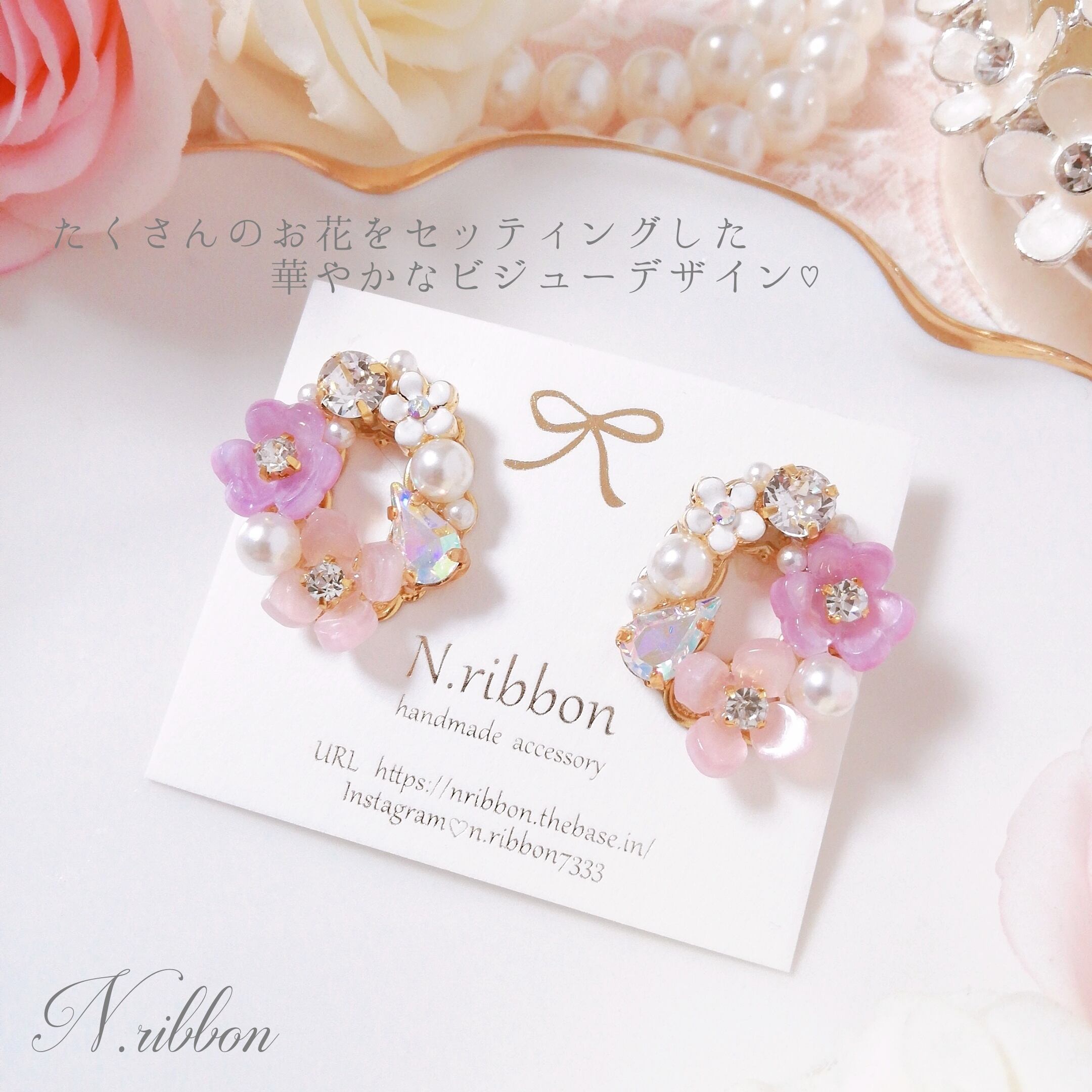 《 Oval flower bijou 》オーバル フラワー ビジュー ピアス/イヤリング