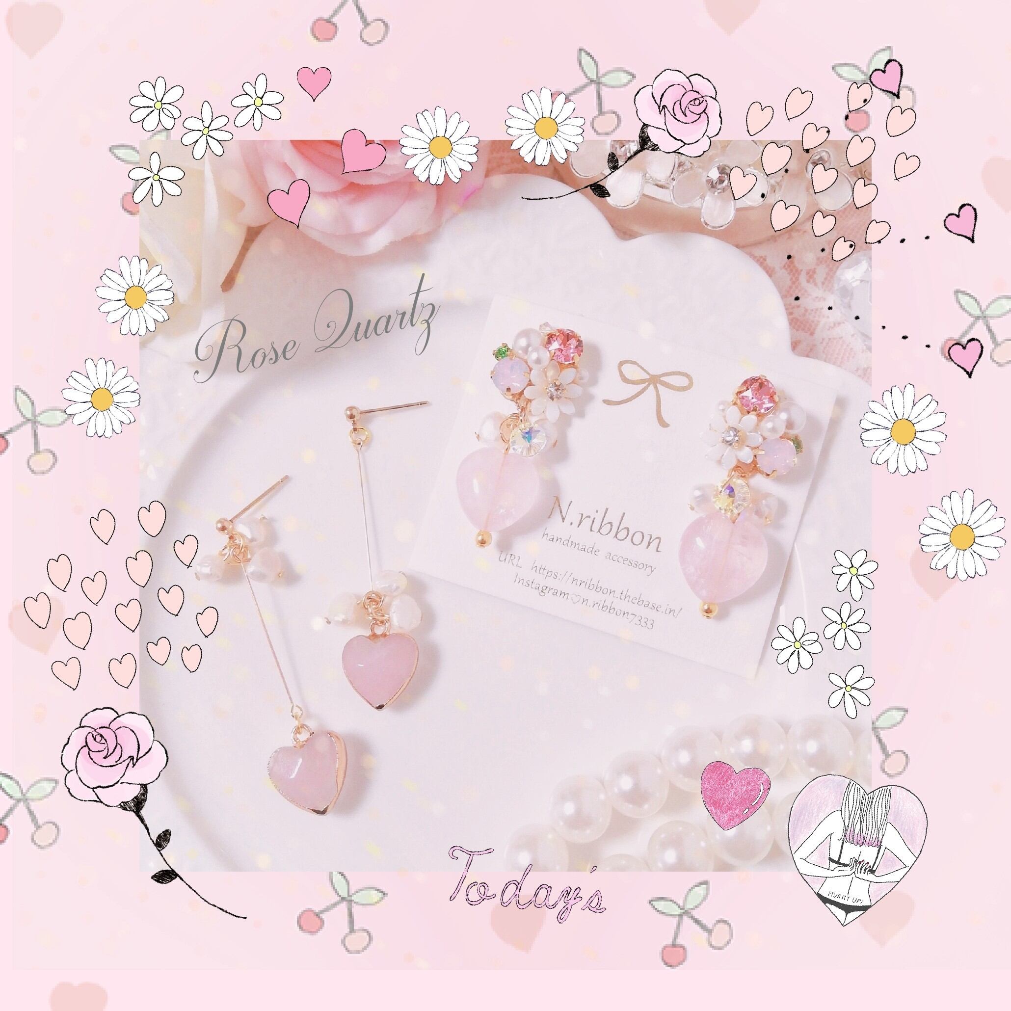 恋のお守りで有名なローズクォーツを使った淡水パールピアス/イヤリング♡