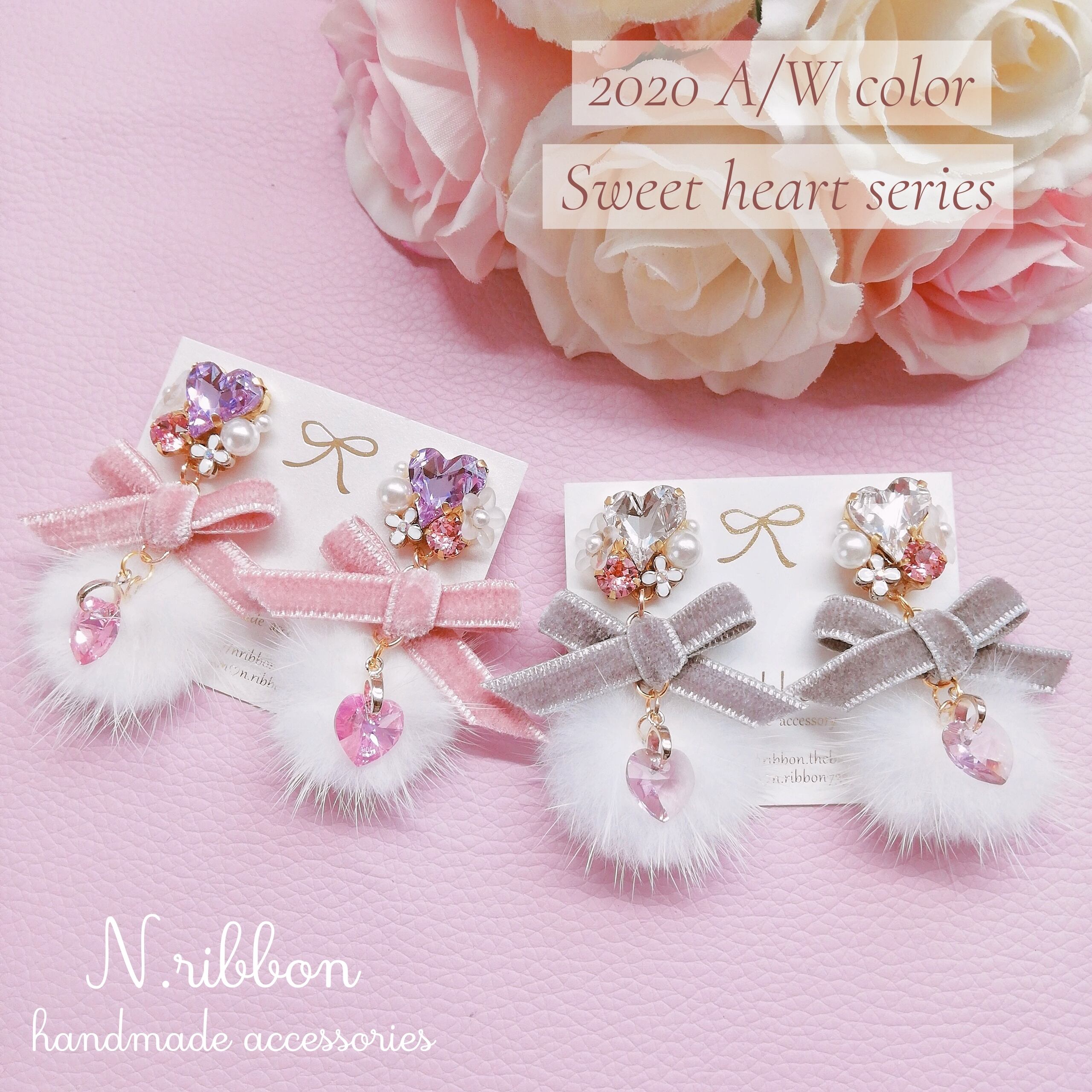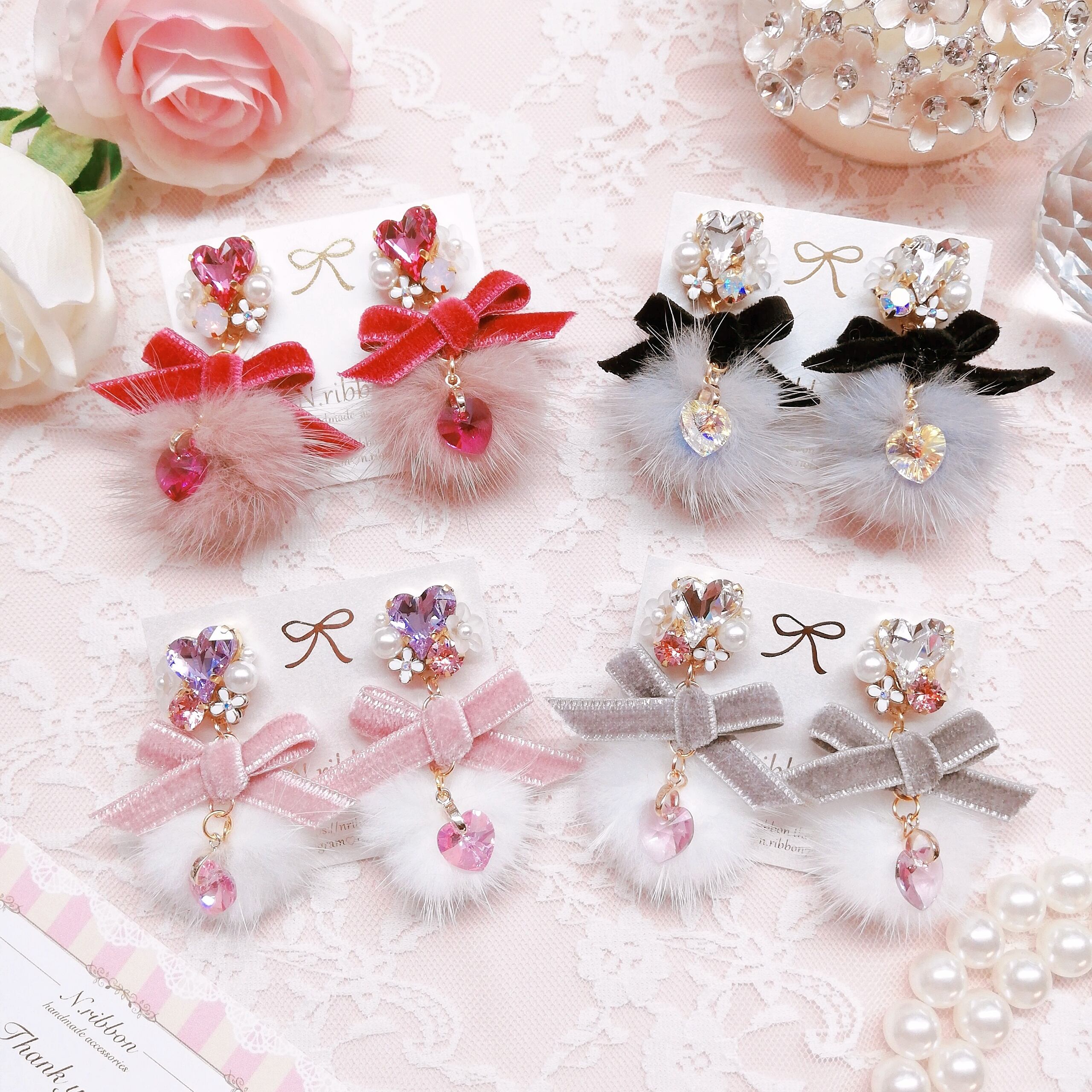 《 Sweet heart swarovski × Mink fur 》スウィートハートスワロフスキー ミンクファー ピアス/イヤリング