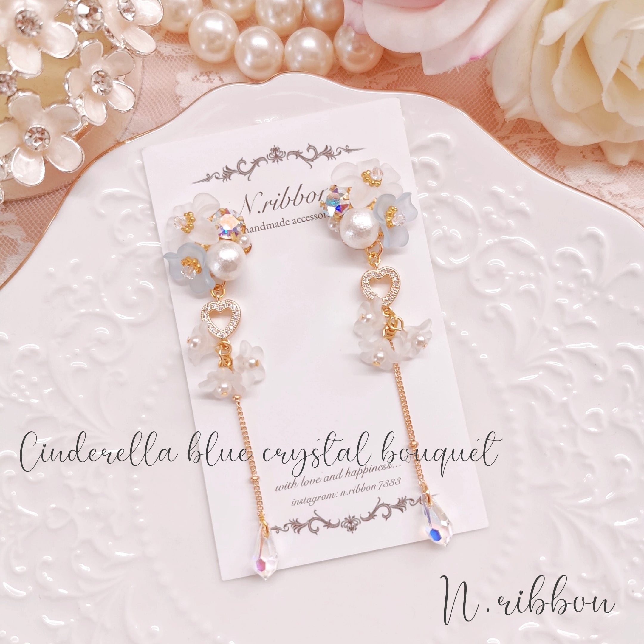 《 Cinderella blue crystal flower bouquet 》シンデレラブルー クリスタルフラワーブーケ ピアス/イヤリング