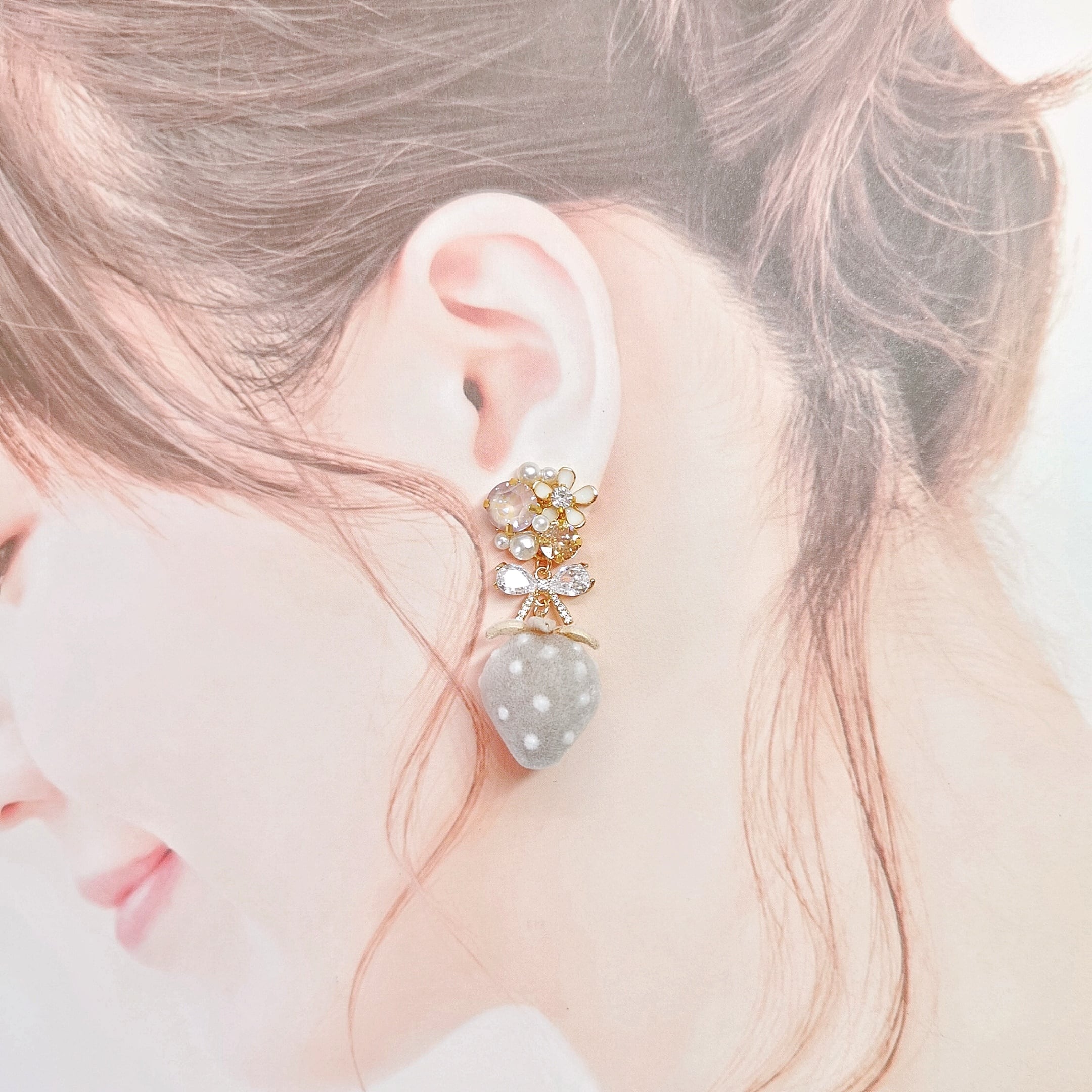 ふわふわの起毛いちごチャームが可愛いスワロフスキービジューピアス/イヤリング♡