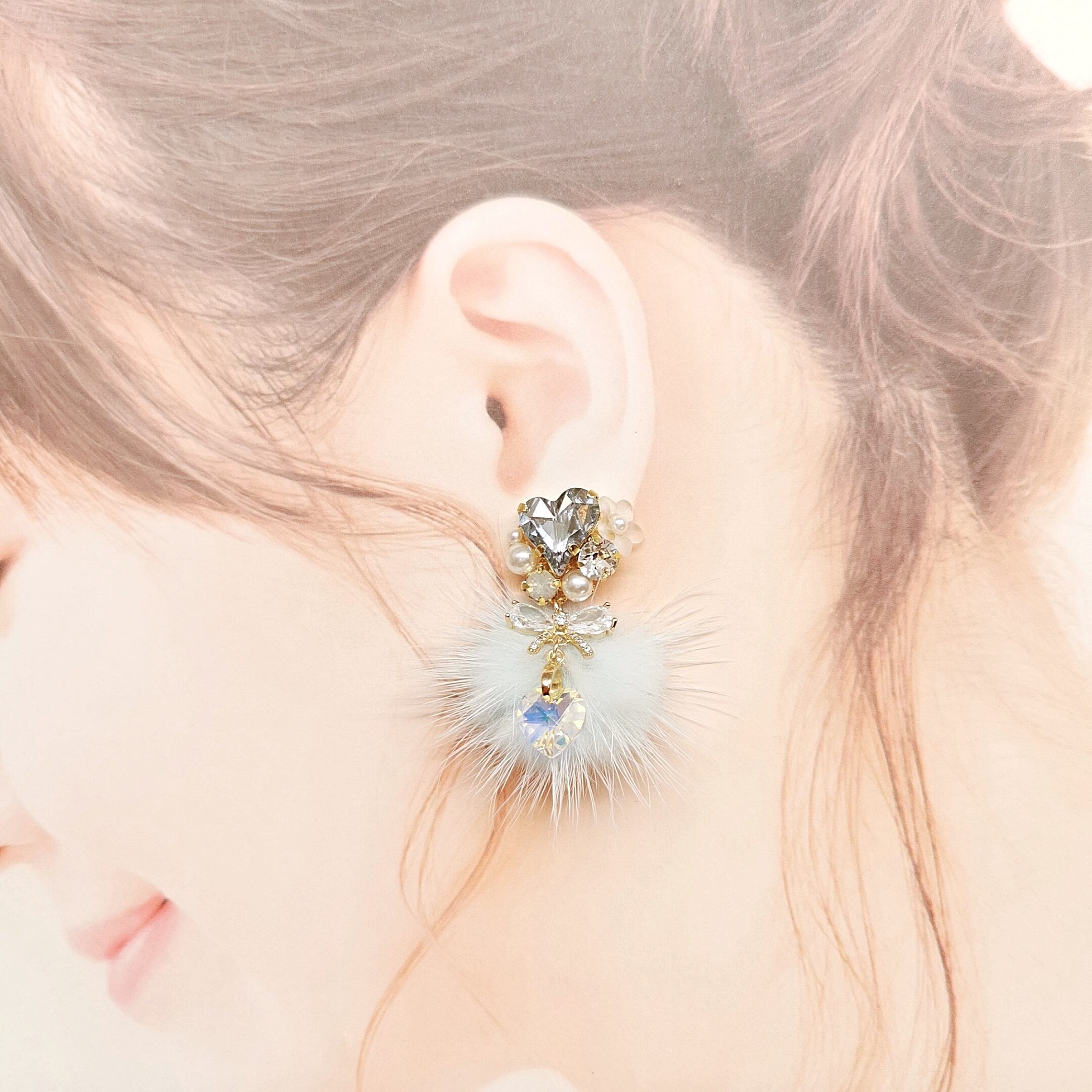 《 2022color♡Sweet heart swarovski × Mink fur 》スウィートハートスワロフスキー ミンクファー ピアス/イヤリング