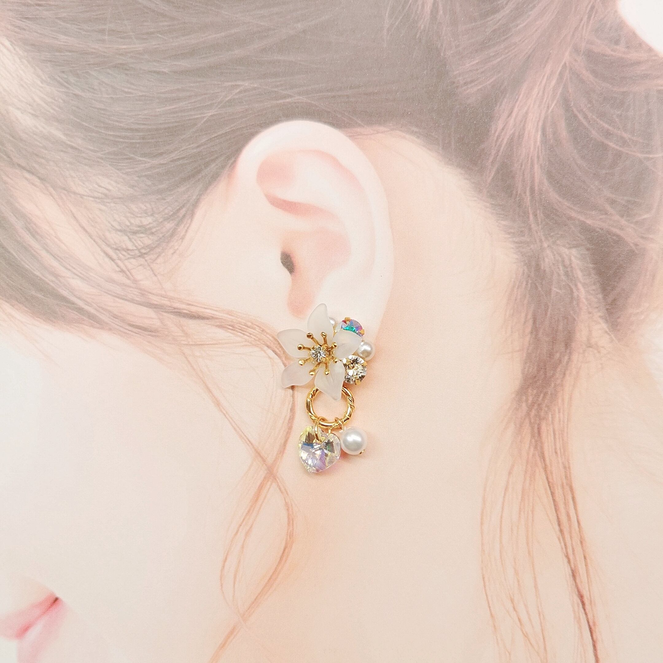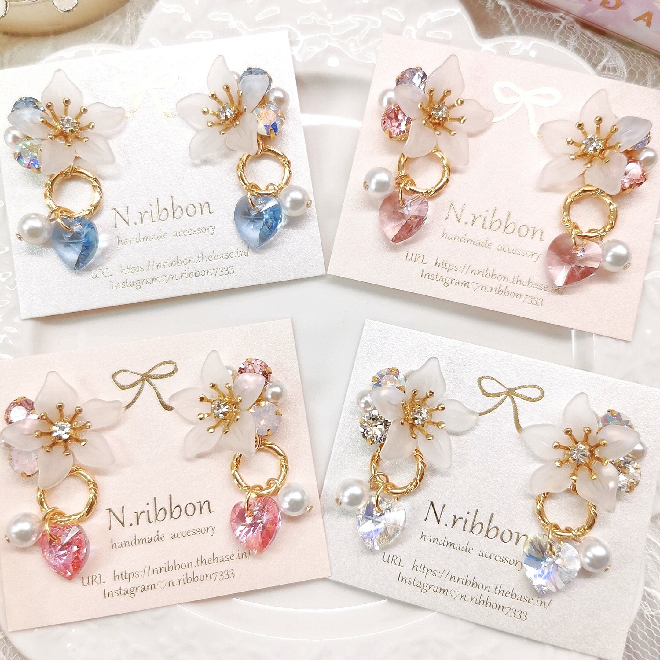 《 Lilyスワロフスキービジューとスワロフスキーハート》 ピアス/イヤリング