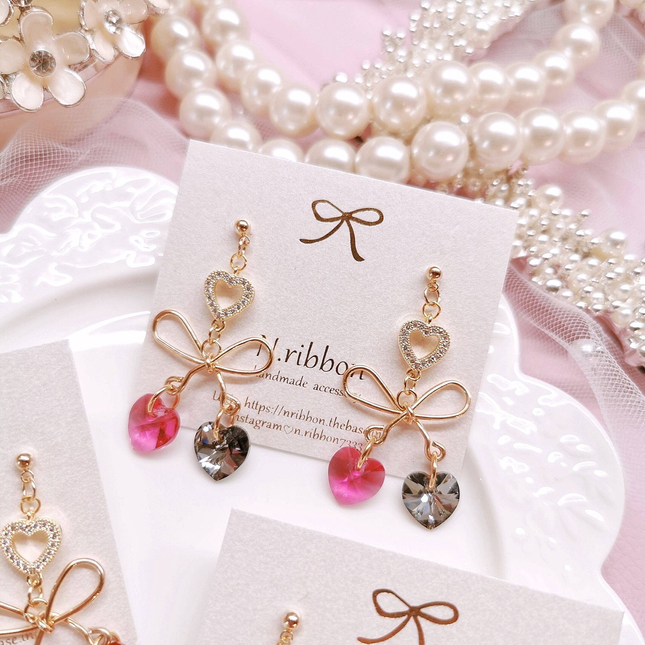 細かなキュービックジルコニアが埋め込まれたハートチャームもキュートです✩.*˚
