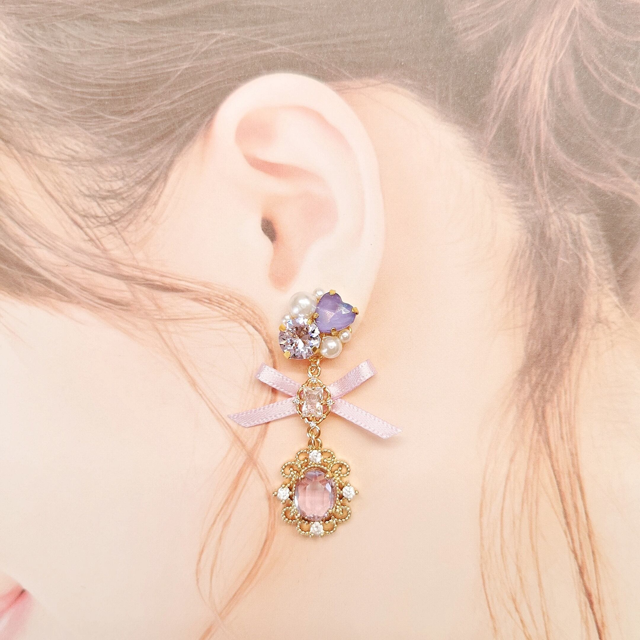 幻想的なカラーのハートストーンをあわせたスワロフスキービジュー♡