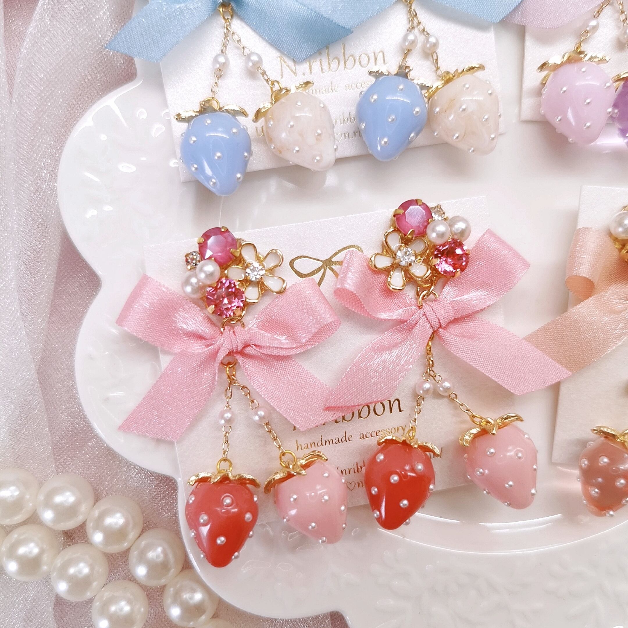 《 全4カラー♡シャイニーリボン&ストロベリーチェリー 》 ピアス/イヤリング