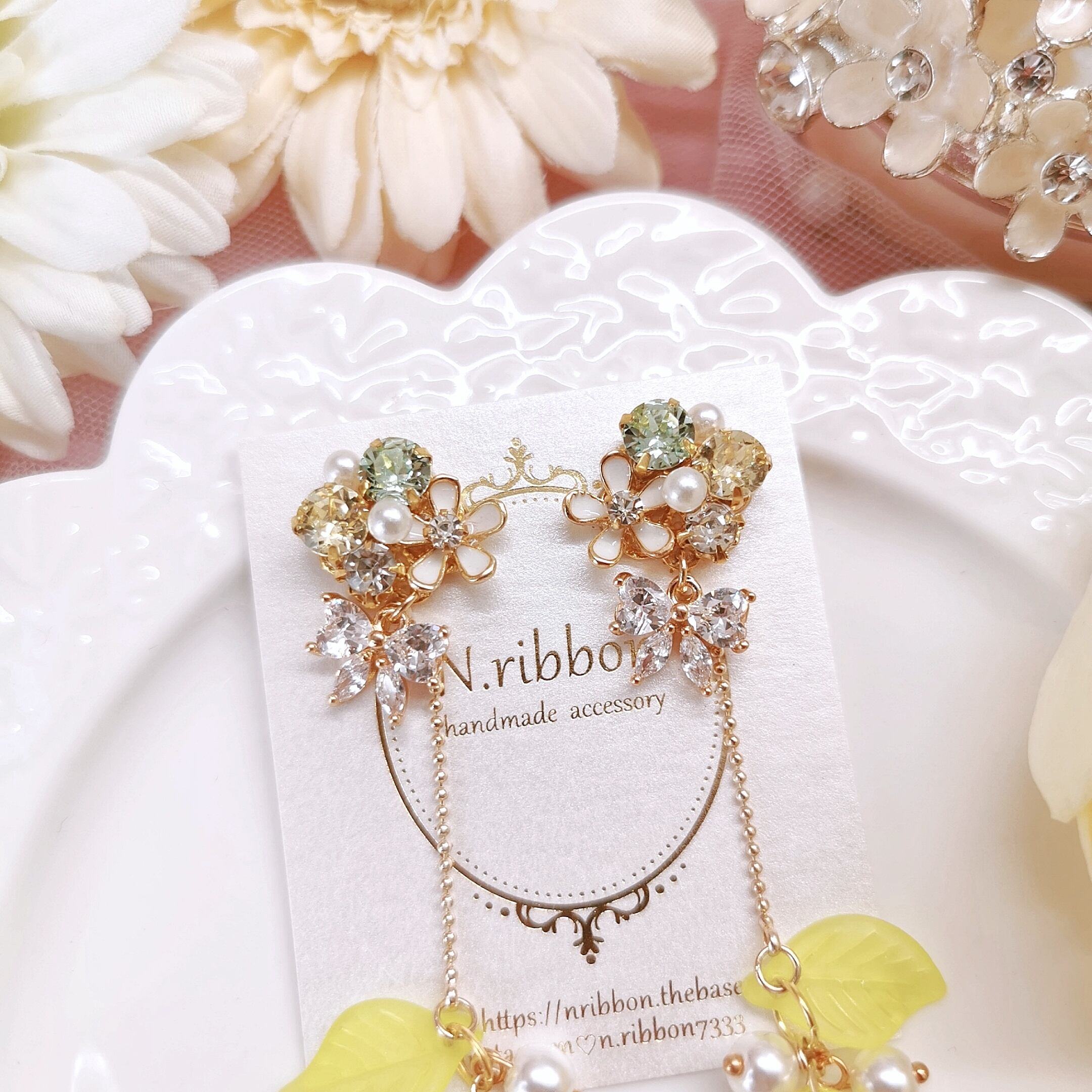 スワロフスキーをふんだんに使ったフラワービジュー♡ボトムのレモンカラーに合わせたライムとイエローのスワロフスキーを使用しています✮
